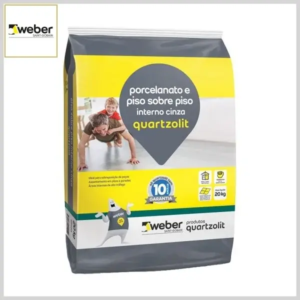 Porcelanato e piso sobre piso interno cinza Quartzolit é uma argamassa colante especialmente desenvolvida para a sobreposição de cerâmicas, pastilhas de porcelana e porcelanatos em áreas internas, sendo indicada para peças de até 80x80cm nas sobreposições e até 100x100cm nas bases comuns.