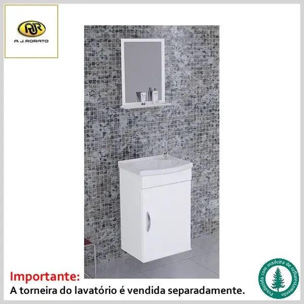 Armário de Banheiro Verona 39.0cm Mdf 5288 1Porta Suspenso c/Espelho+Pia - Branco - AJ Rorato - Ref:21984
