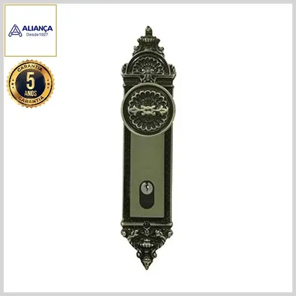 Fechadura Externa Colonial 3600/126 Broca55mm Chave Simples c/Maçaneta c/Espelho Zamac - Latão Oxidado - Aliança - Ref:6879