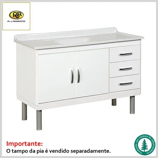 Gabinete de Cozinha Beijing 116.2 Mdf 5801 2Portas+3Gavetas s/Tampo - Branco - AJ Rorato - Ref:7954