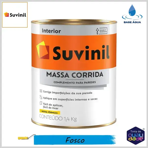 Massa Corrida PVA Interiores, Branco Fosco - 1.4 kg - Suvinil - Ref:16301