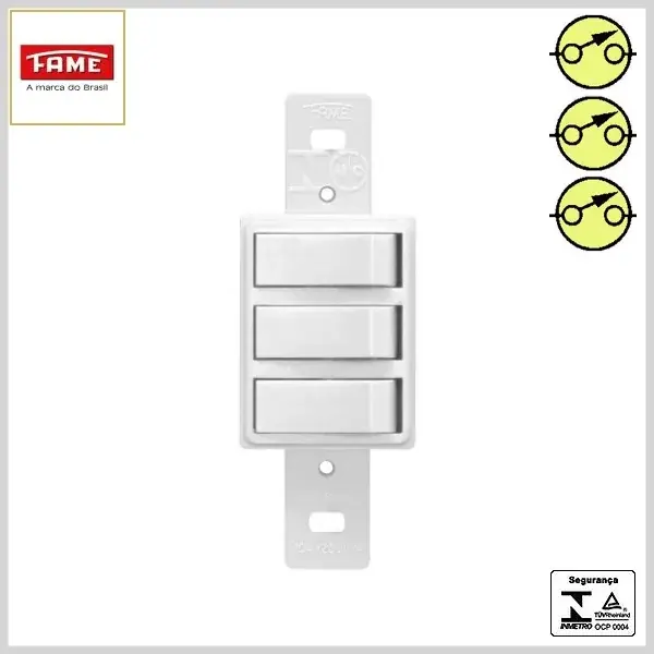 Módulo Elétrico Blanc 1 Interruptor 3 Teclas Simples - Corrente/Tensão(Máx): 10A x 250V - Fame - Ref:21847